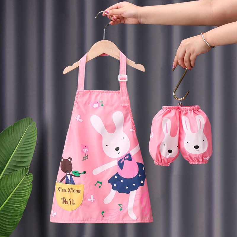 兒童圍裙畫畫防水女孩美術課繪畫護衣男孩廚房幼兒園吃飯寶寶罩衣