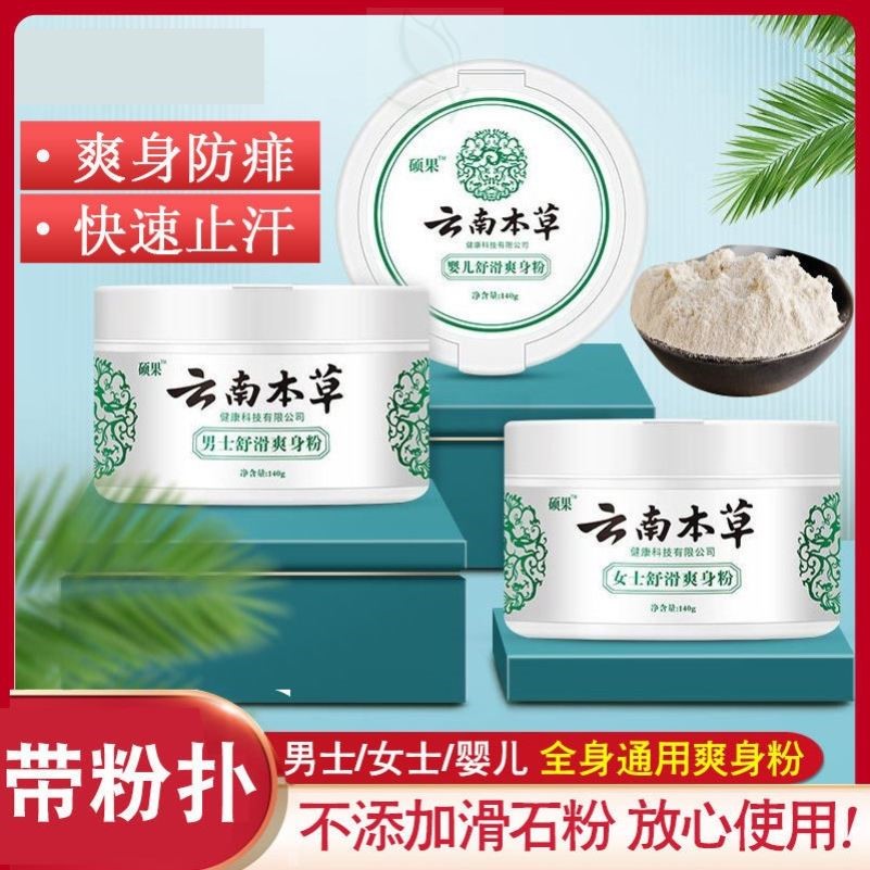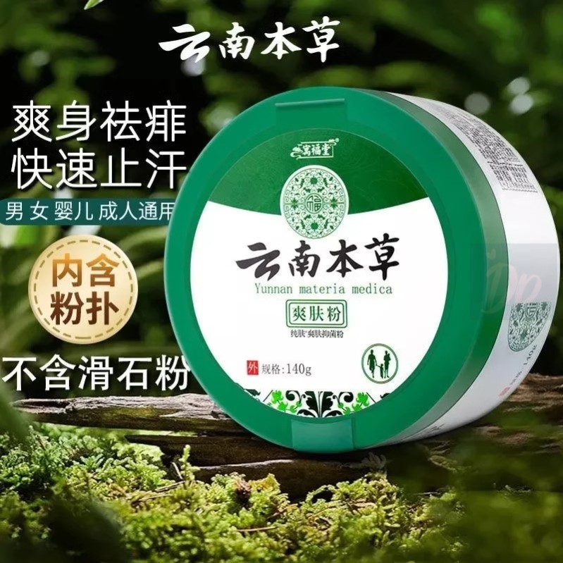 云南本草爽身粉痱子粉干爽吸汗止癢全身私處新生嬰兒童成人正品店