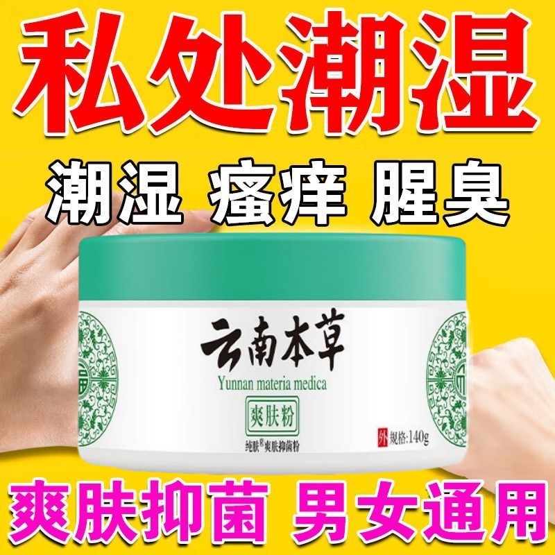 云南本草成人爽身粉陰囊私處濕癢止汗異味全身瘙癢痱子紅疹子正品