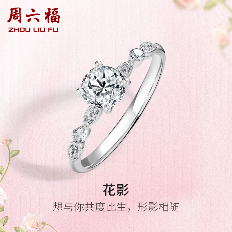 周六福心動50分鉆戒女天然璀璨鉆石戒指結婚求婚戒節日禮物
