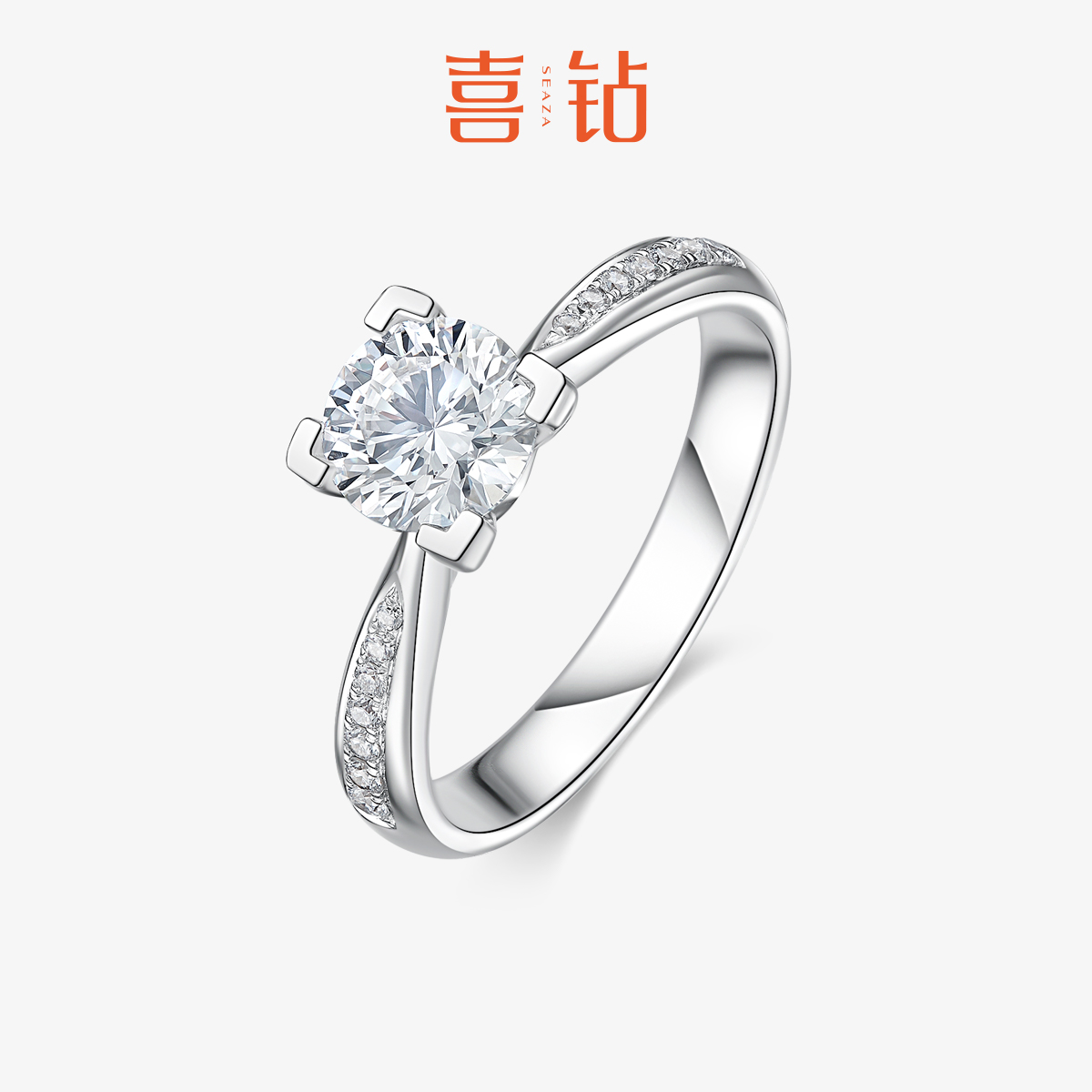 喜鉆鉆戒女四爪女PT950鉑金簡約求婚訂婚婚戒天然真鉆送女友新品