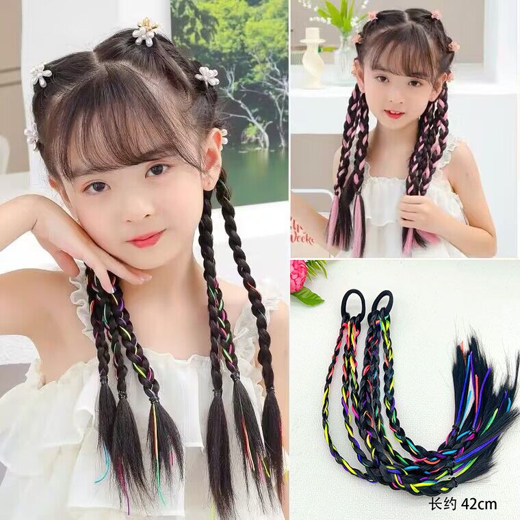 庫洛米假發辮子兒童發繩甜酷女孩拳擊辮扎馬尾女童新款發圈發飾