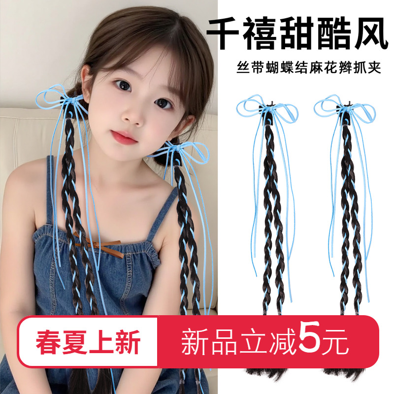 甜酷抓夾麻花辮兒童絲帶蝴蝶結假發辮表演女童臟辮發飾雙馬尾頭飾