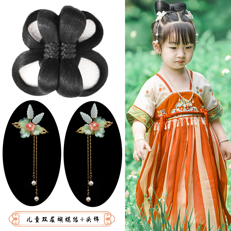 極速兒童古裝漢服假發演出造型寶寶發髻發包古風R頭飾發飾玥玥蝴