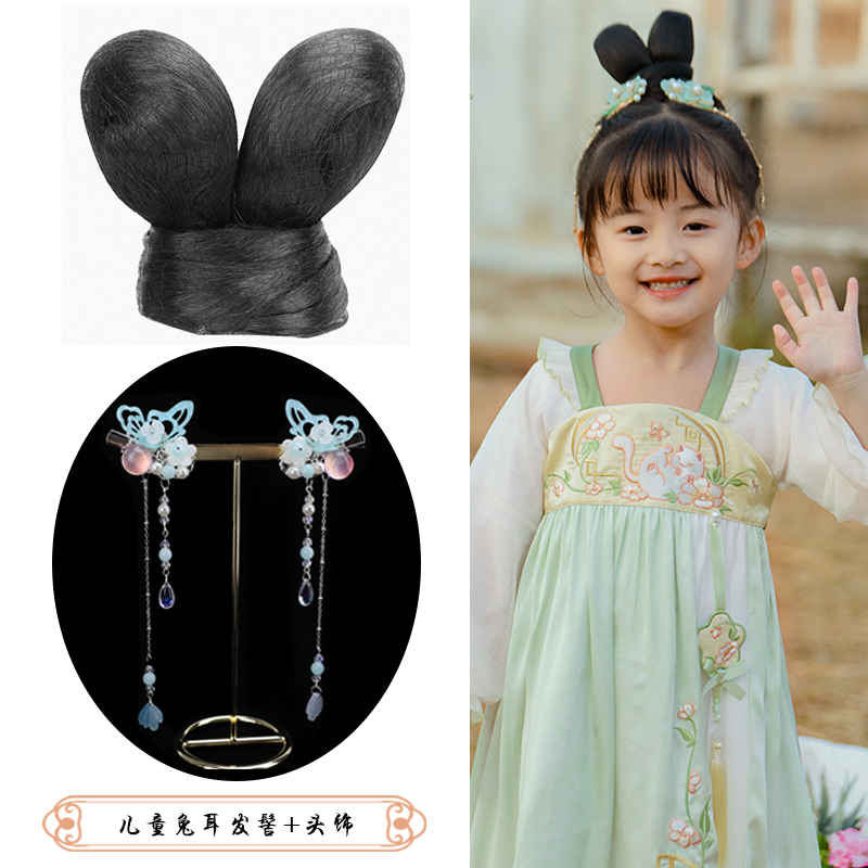 極速兒童古風造型寶寶蝴蝶結發箍古裝漢服假發P頭飾組合可愛兔耳