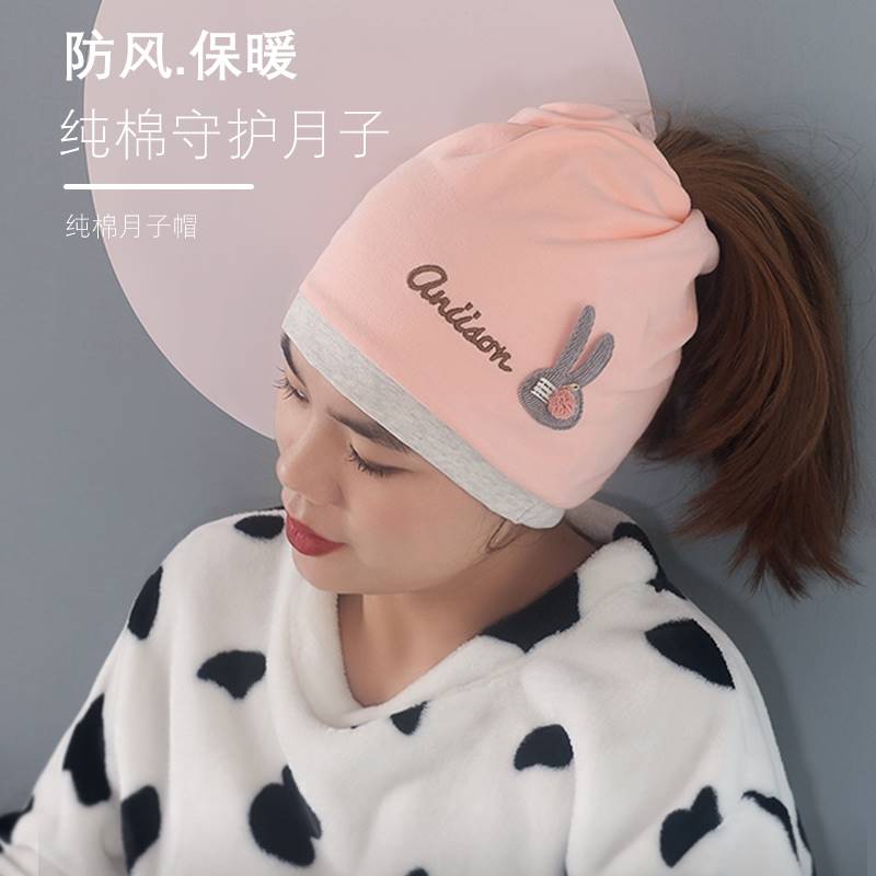 婧麒月子帽產后春秋純棉月子頭巾發帶秋季產婦坐月子孕婦帽子防風