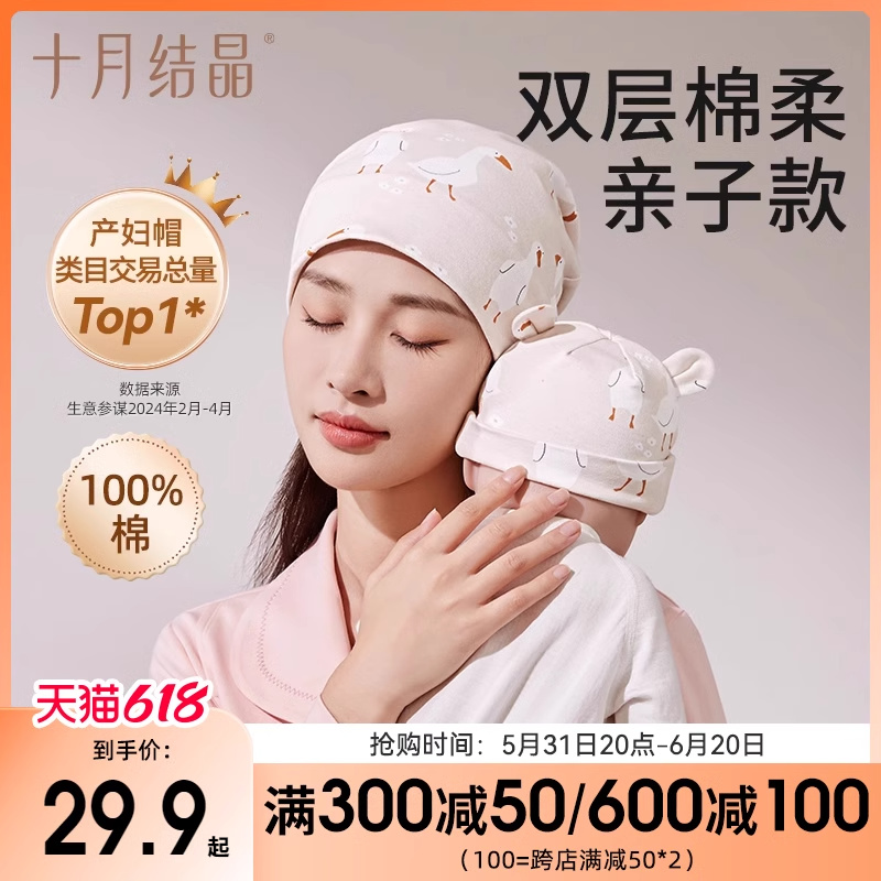 十月結晶子母帽夏季室內產婦帽嬰兒帽防風保暖坐月子睡眠帽春秋季