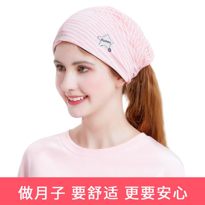 婧麒月子帽產后春夏薄款純棉5月份月子頭巾發帶防風孕婦帽產婦帽