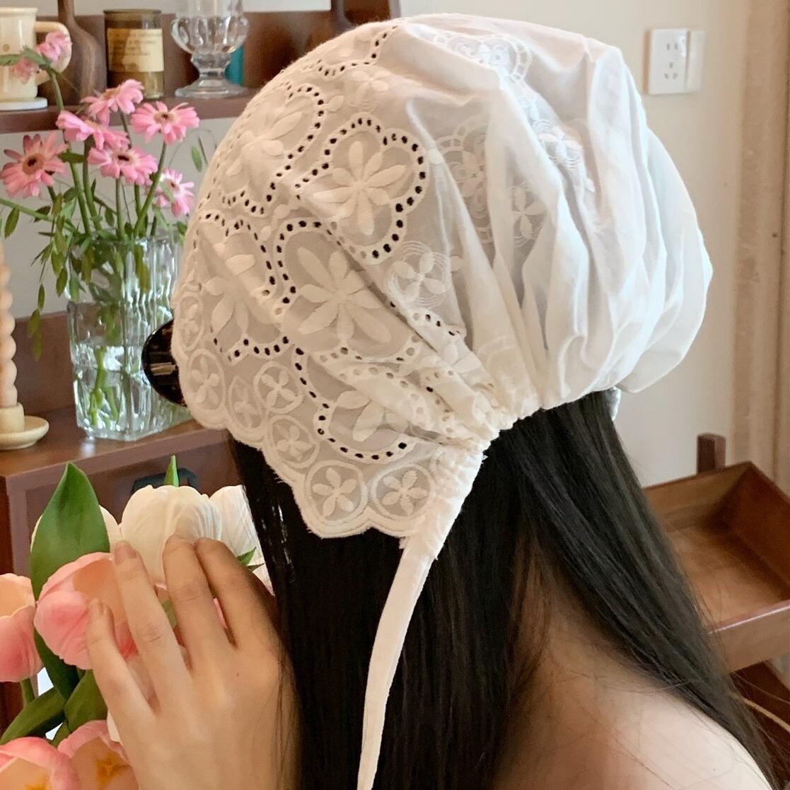 春夏新款韓版百搭慵懶風花朵系帶頭巾包頭帽子輕薄透氣設計宮廷帽