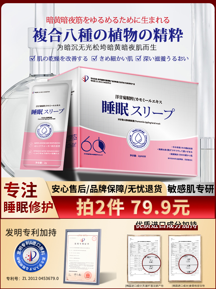 洋甘菊水漾煥顏睡眠免洗面膜補水保濕舒緩淡化細紋緊致44
