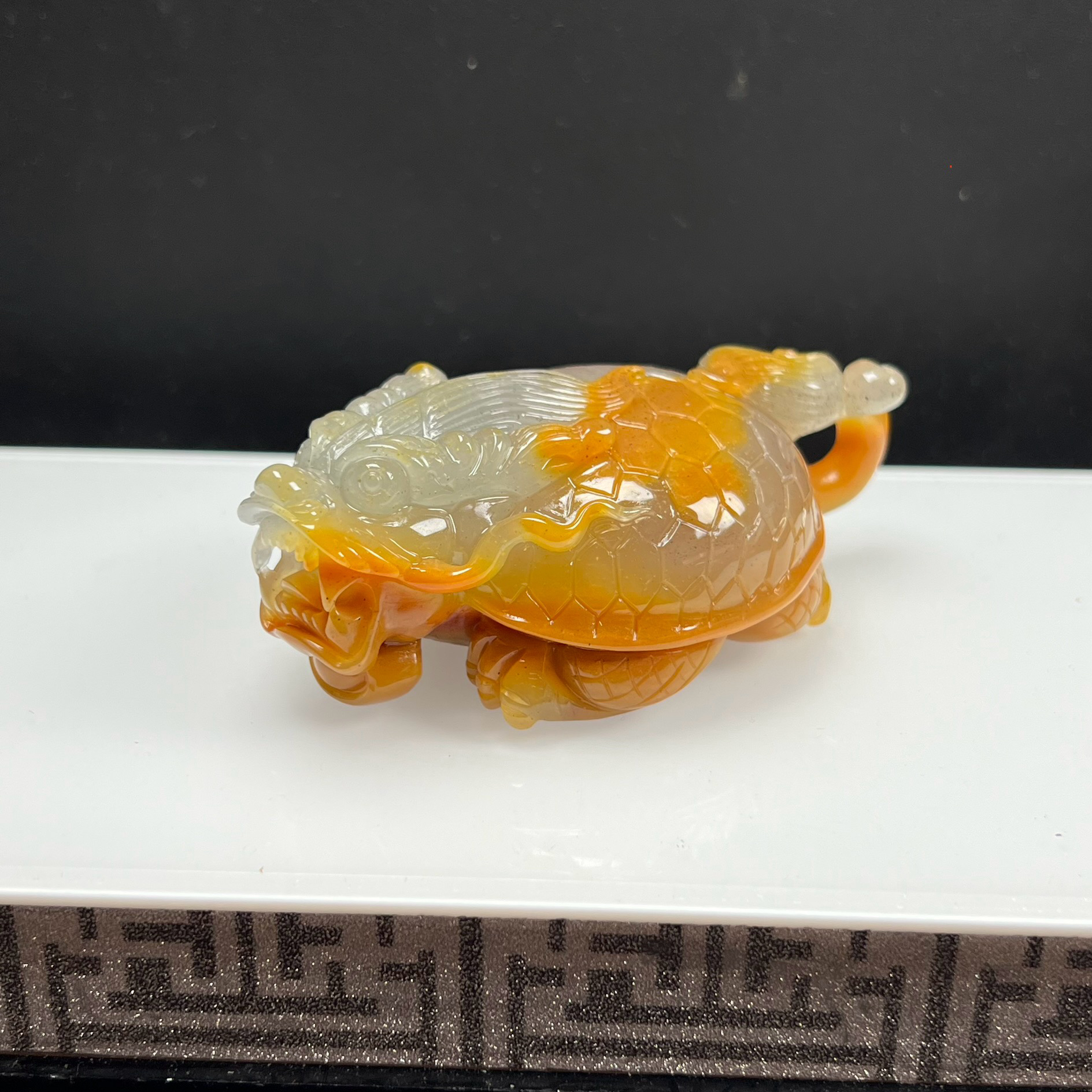 天然玉石精品珠寶云南黃龍玉歌謠紋長壽龜茶寵擺件手玩件 證書