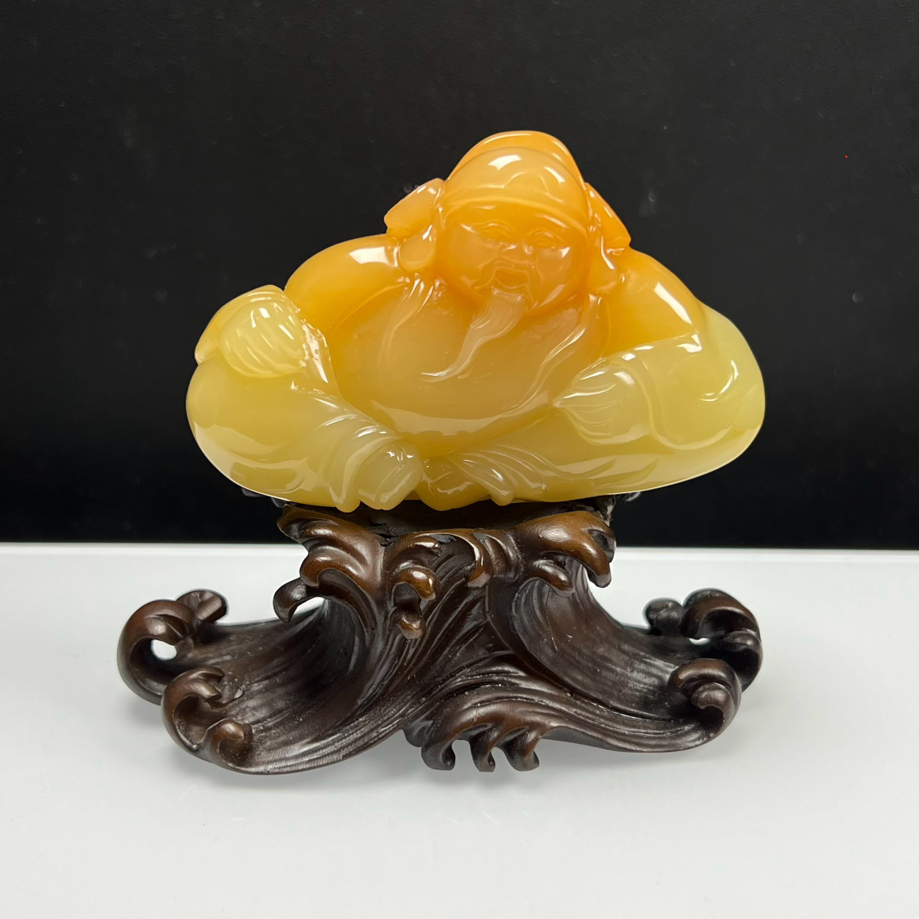 瑞皇翠 純天然玉石精品珠寶緬料黃龍玉俏色財神爺小擺件手玩件