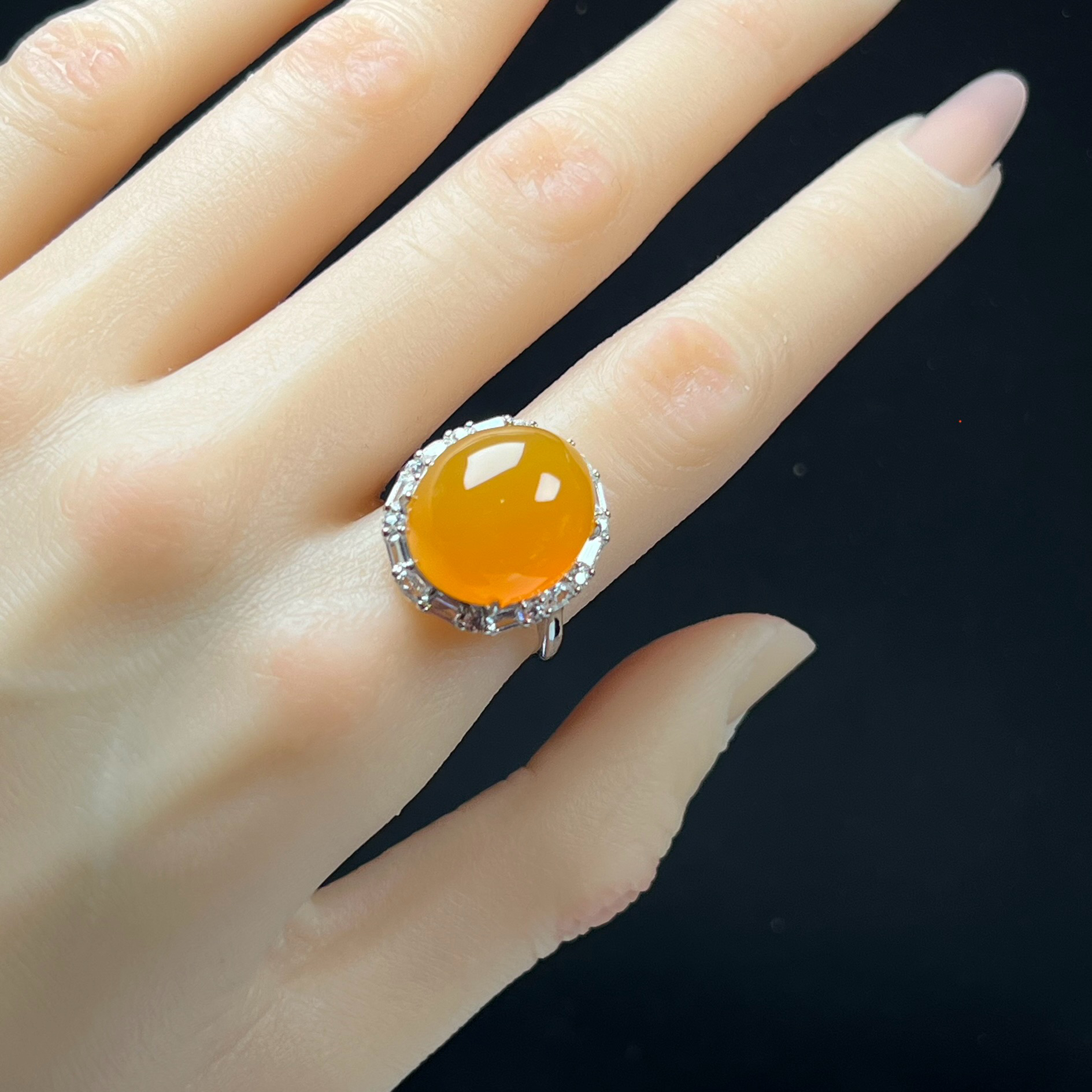 瑞皇翠 天然玉石精品珠寶緬料冰黃黃龍玉戒指925銀鑲嵌活扣送禮