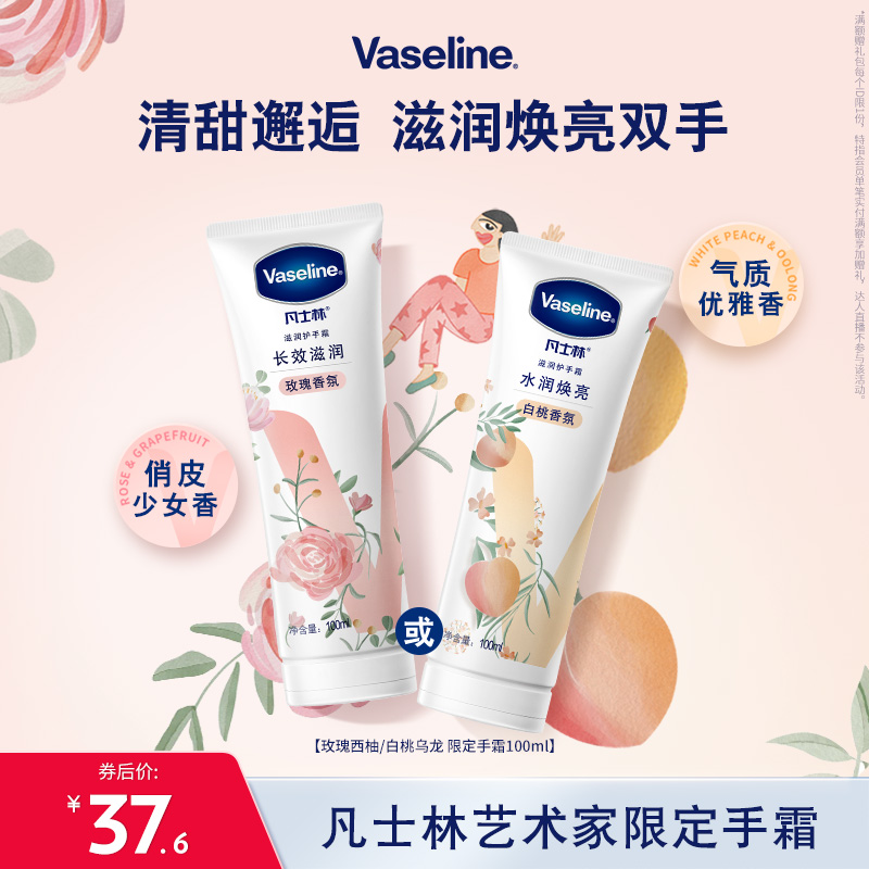 【藝術家聯名】凡士林滋潤護手霜套裝清香型白桃玫瑰留香滋潤保濕