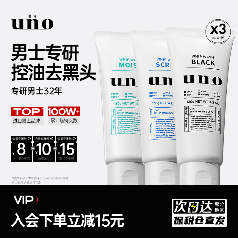 UNO吾諾洗面男士專用控油清爽保濕除螨去黑頭學生專用正品3支裝