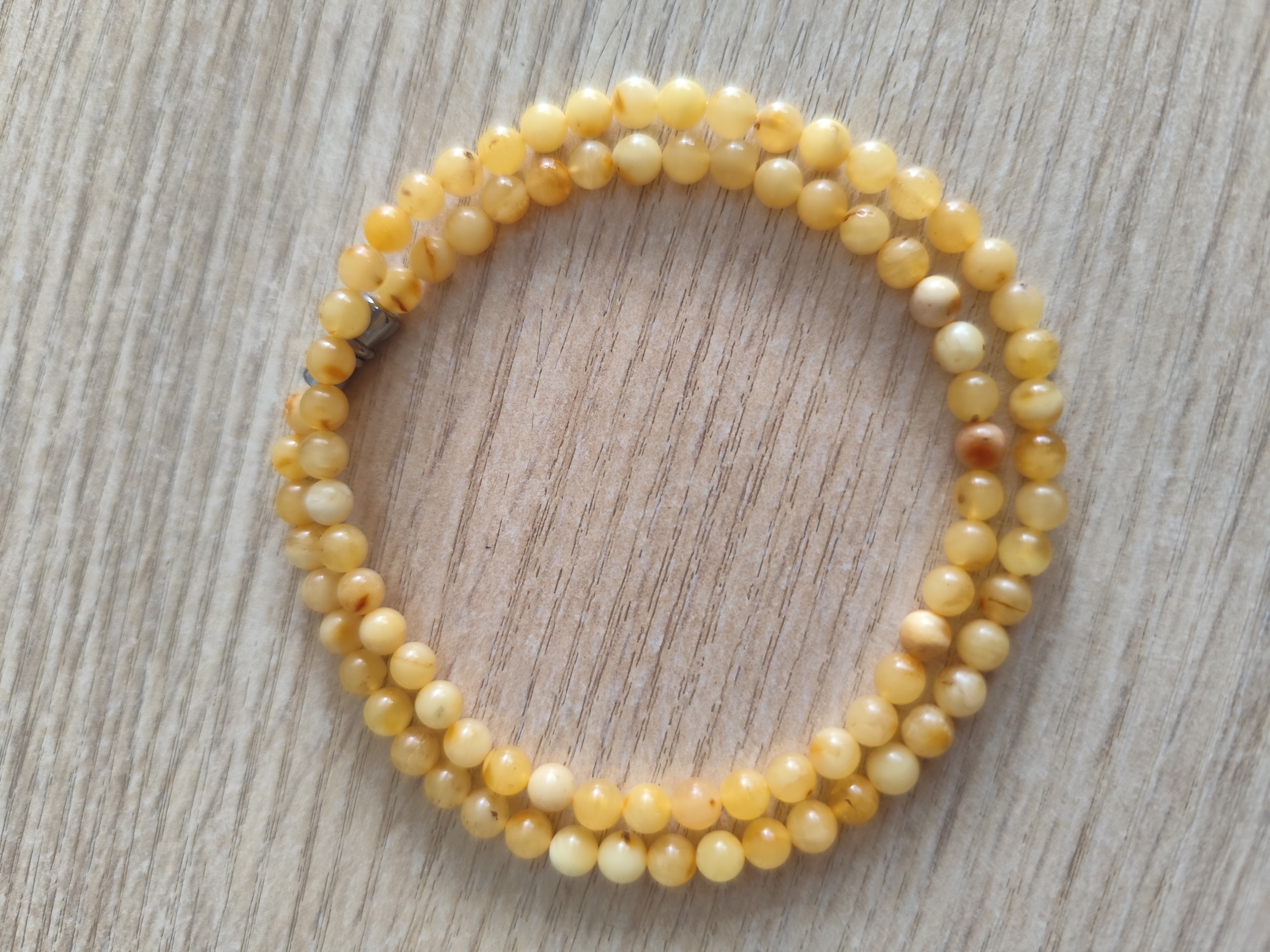 天然琥珀蜜蠟無烤色白蜜蠟珍珠蜜小項鏈45厘米長鎖骨鏈5mm不完美