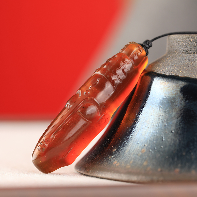 緬甸琥珀蜜蠟果凍鏤空路路通吊墜金棕珀紅蜜轉運珠復古時尚鎖骨鏈