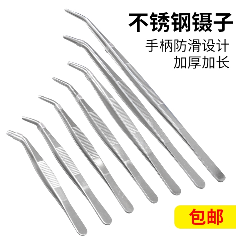 鑷子工具維修夾子不銹鋼超長鑷子加長加厚多用大彎頭魚缸水草聶子