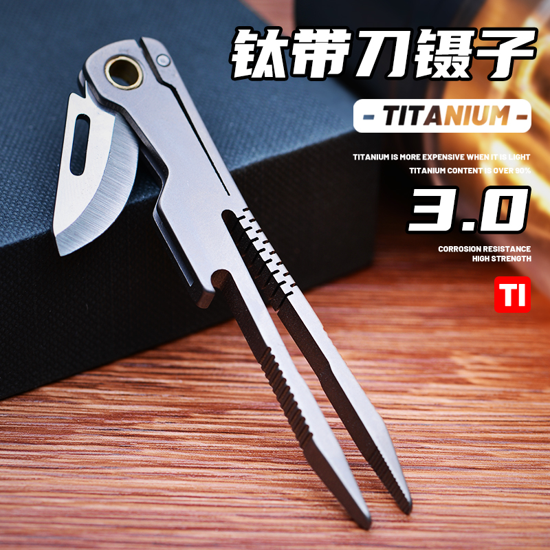 鈦合金夾子小鑷子高精度EDC便攜戶外工具帶小刀開瓶器隨身鑰匙扣