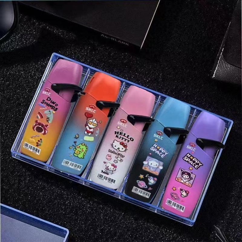新款防爆漸變色可愛卡通圖案金屬搖臂充氣打火機藍色 火焰送男友