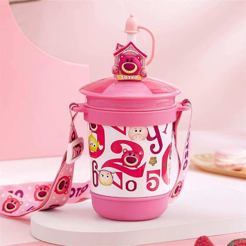 新款草莓熊兒童保溫杯不銹鋼水壺吸管攪拌杯公仔可愛女學生水杯子
