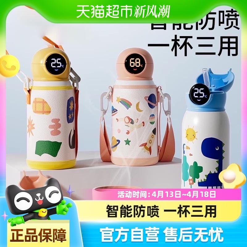 可愛超萌兒童保溫杯女生高顏值網紅吸管水杯女斜挎大肚水壺大容量