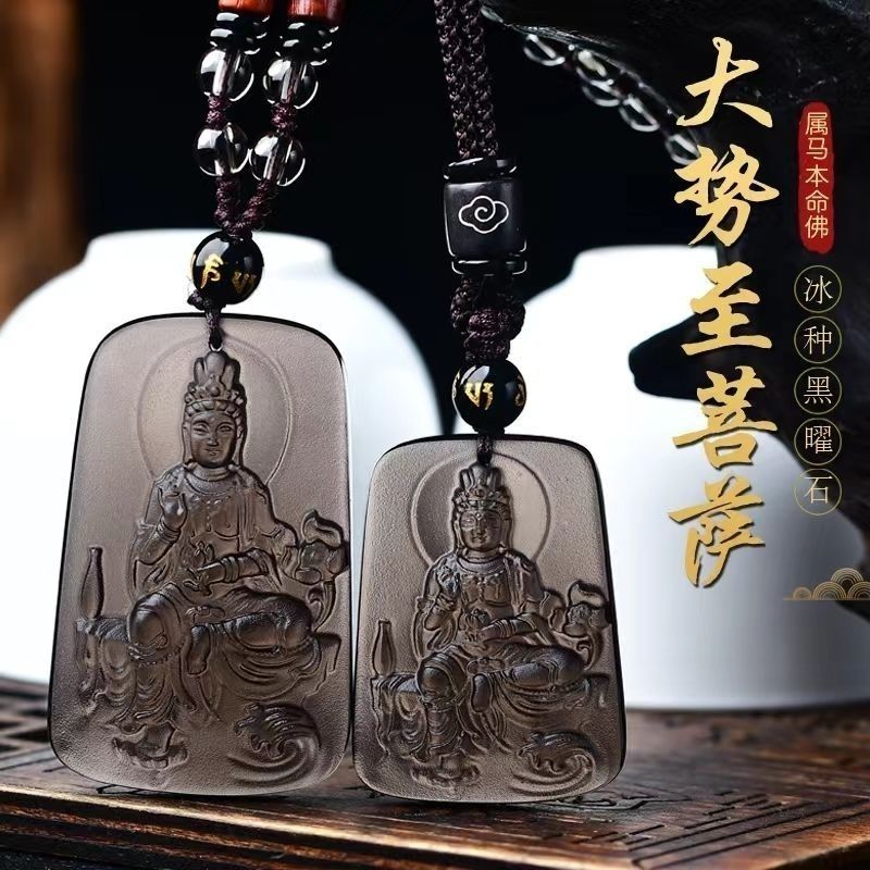 2024新款冰種黑曜石大勢普賢菩薩佛像吊墜項鏈本命年掛件龍蛇