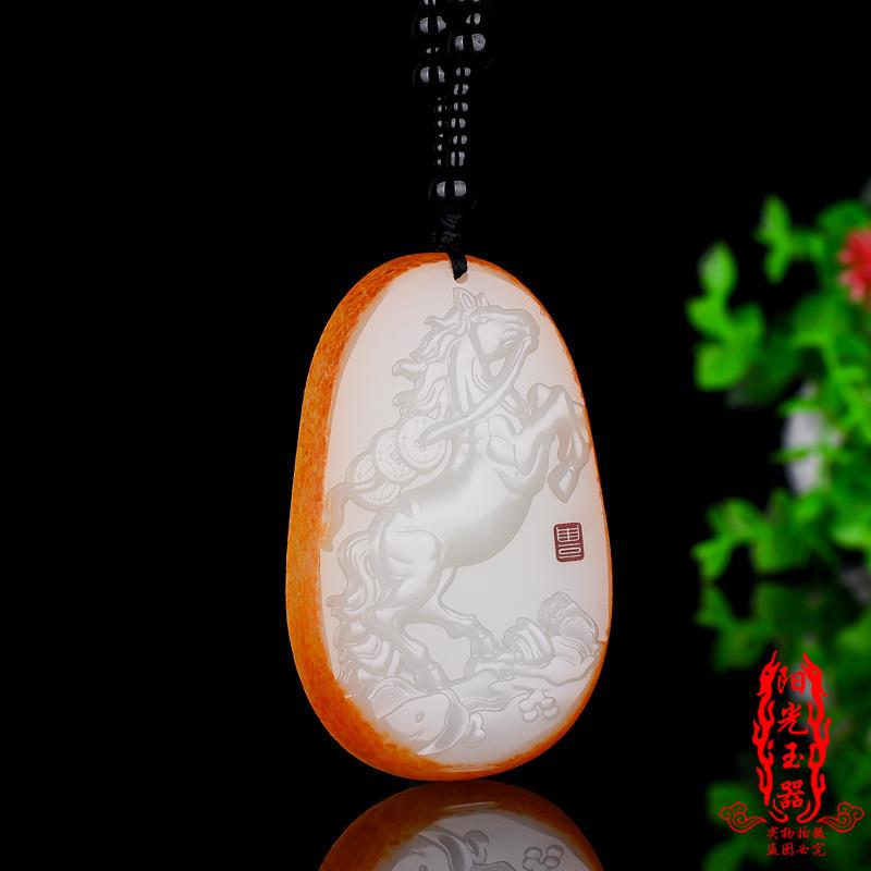 新疆玉馬吊墜天然玉石白馬玉掛件男女項鏈玉石生肖馬玉牌毛衣鏈墜