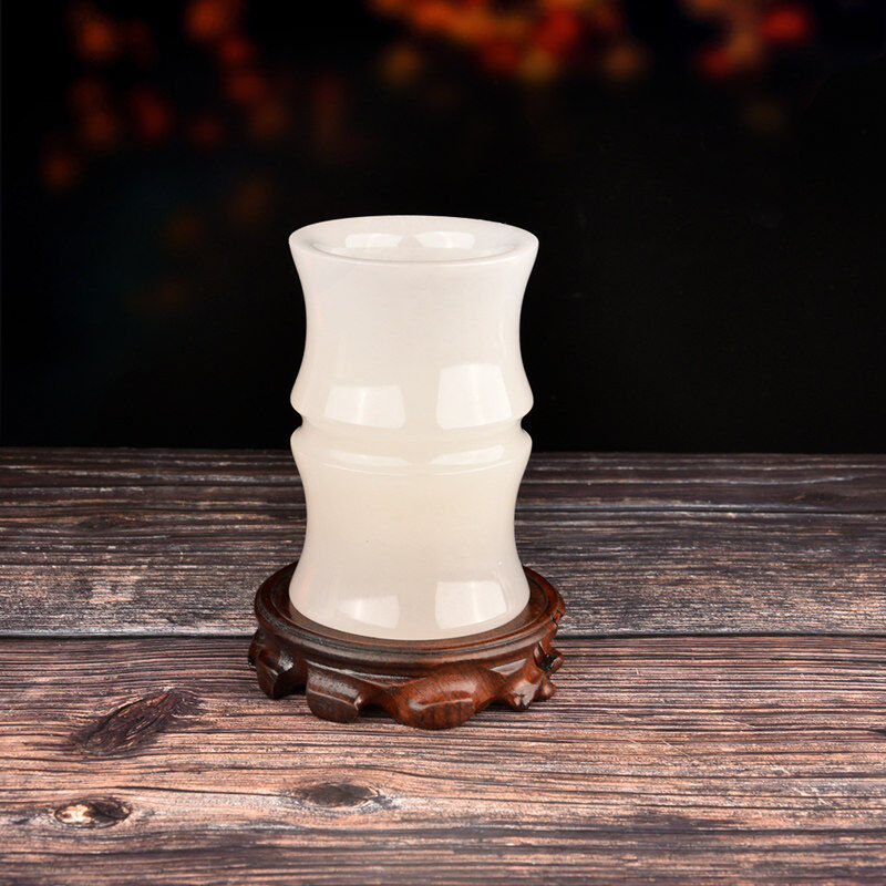 【品質好物】玉石筆筒書房辦公室玉雕裝飾擺件文房四寶圓筒花器老