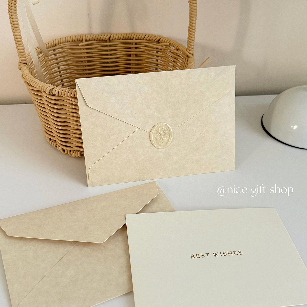 Nice gift ~復古米黃色信封浪漫羊巴紋加厚信封套裝表白手寫信箋