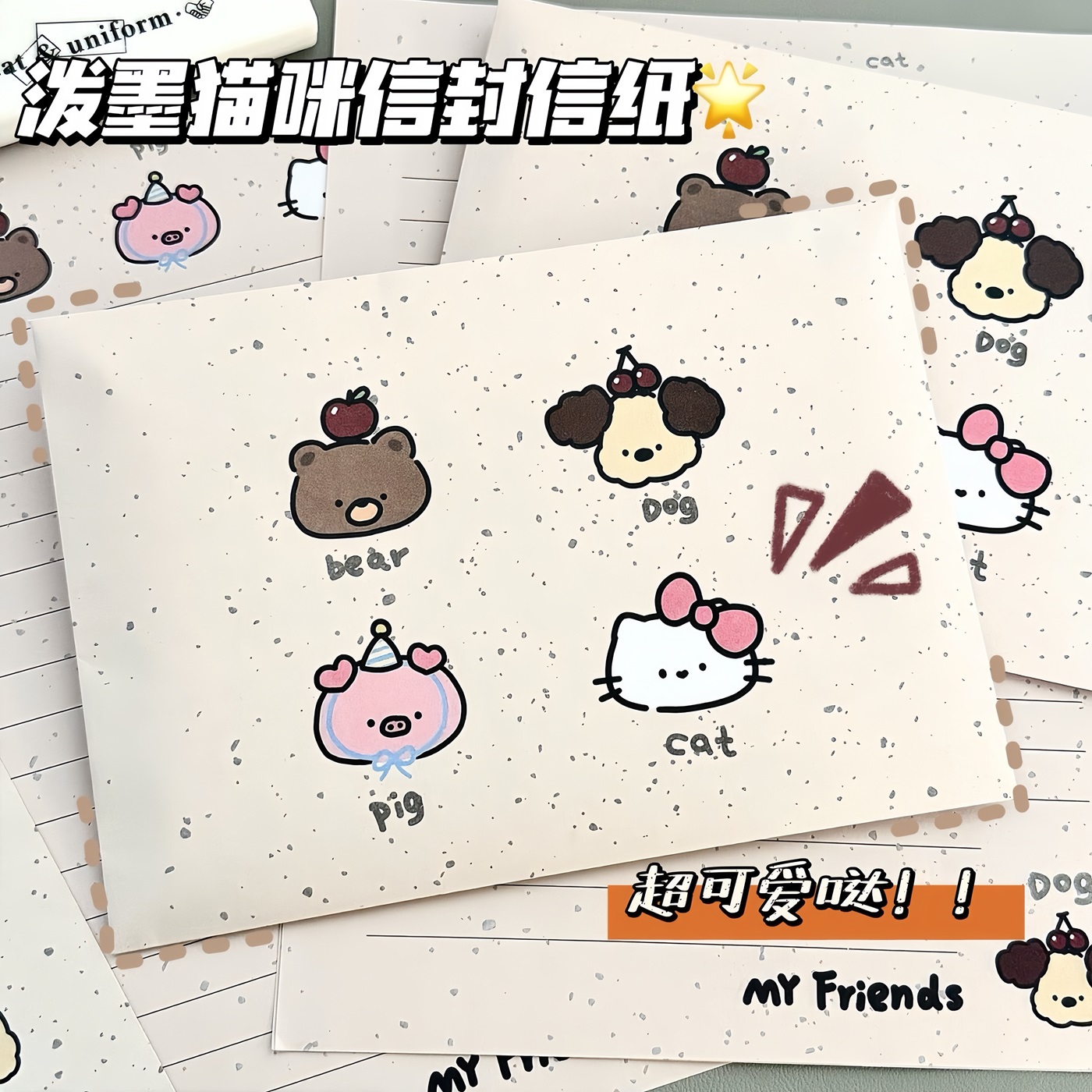 潑墨貓咪信封信紙組合ins風高顏值可愛小眾設計儀式感手寫信箋