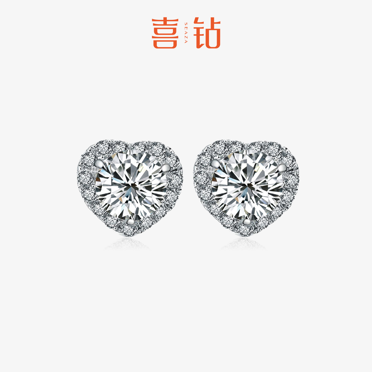 喜鉆 愛心鉆石耳釘18K金一克拉心形PT950鉑金女款珠寶配飾情人節
