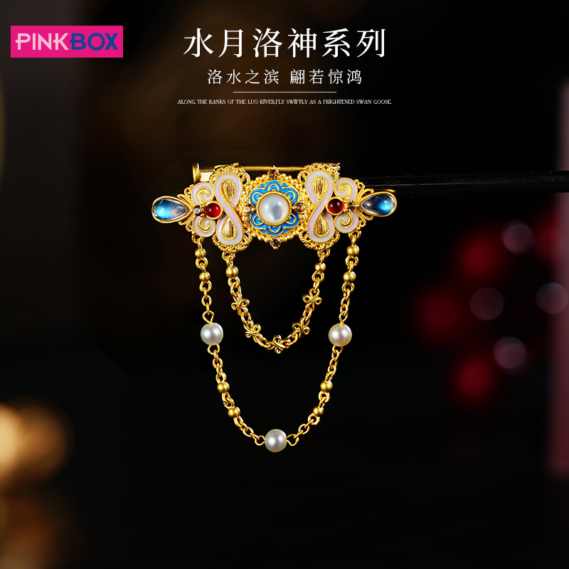 PINKBOX/娉飾珠寶黃金胸針足金月光石風雅吊墜水月洛神一款多戴