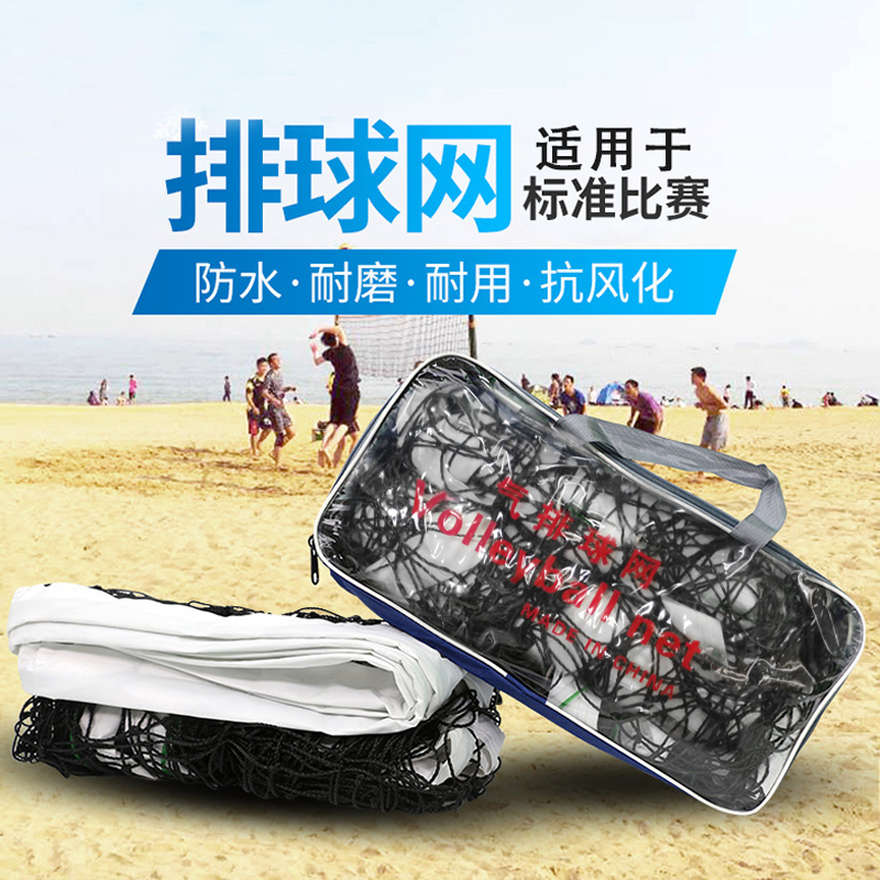 專業排球球網 氣排球網沙灘排球z網 標準比賽網便攜式配鋼絲繩包