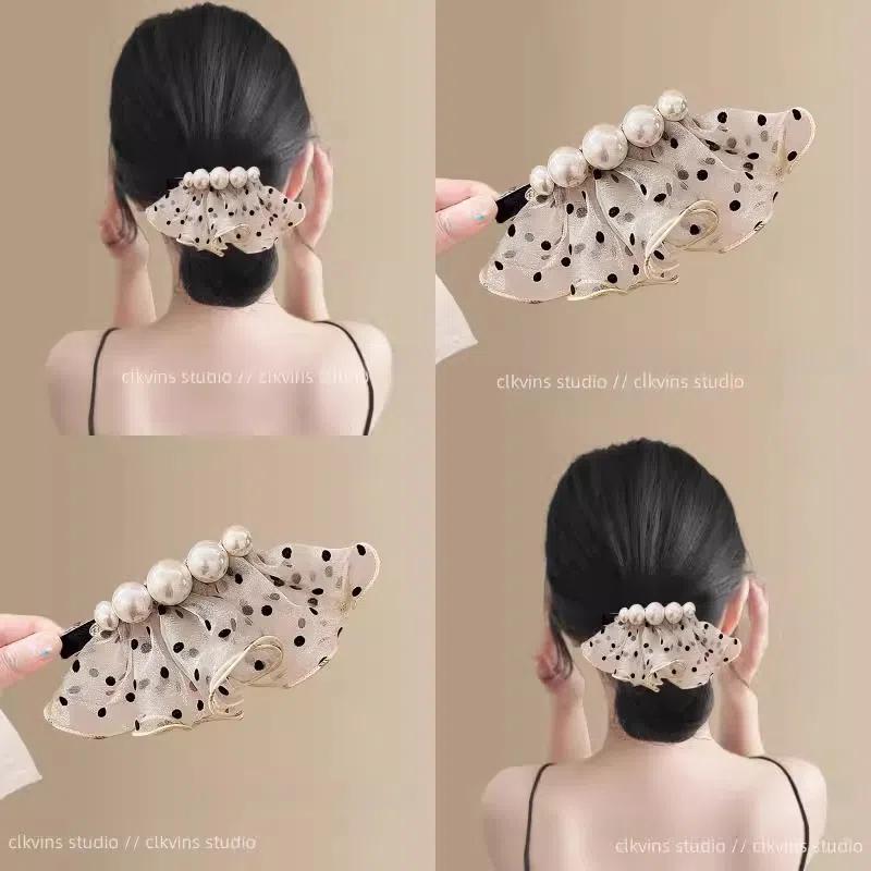 楓丹白露~法式發夾女 慵懶頭花高級感半扎發馬尾夾溫柔款