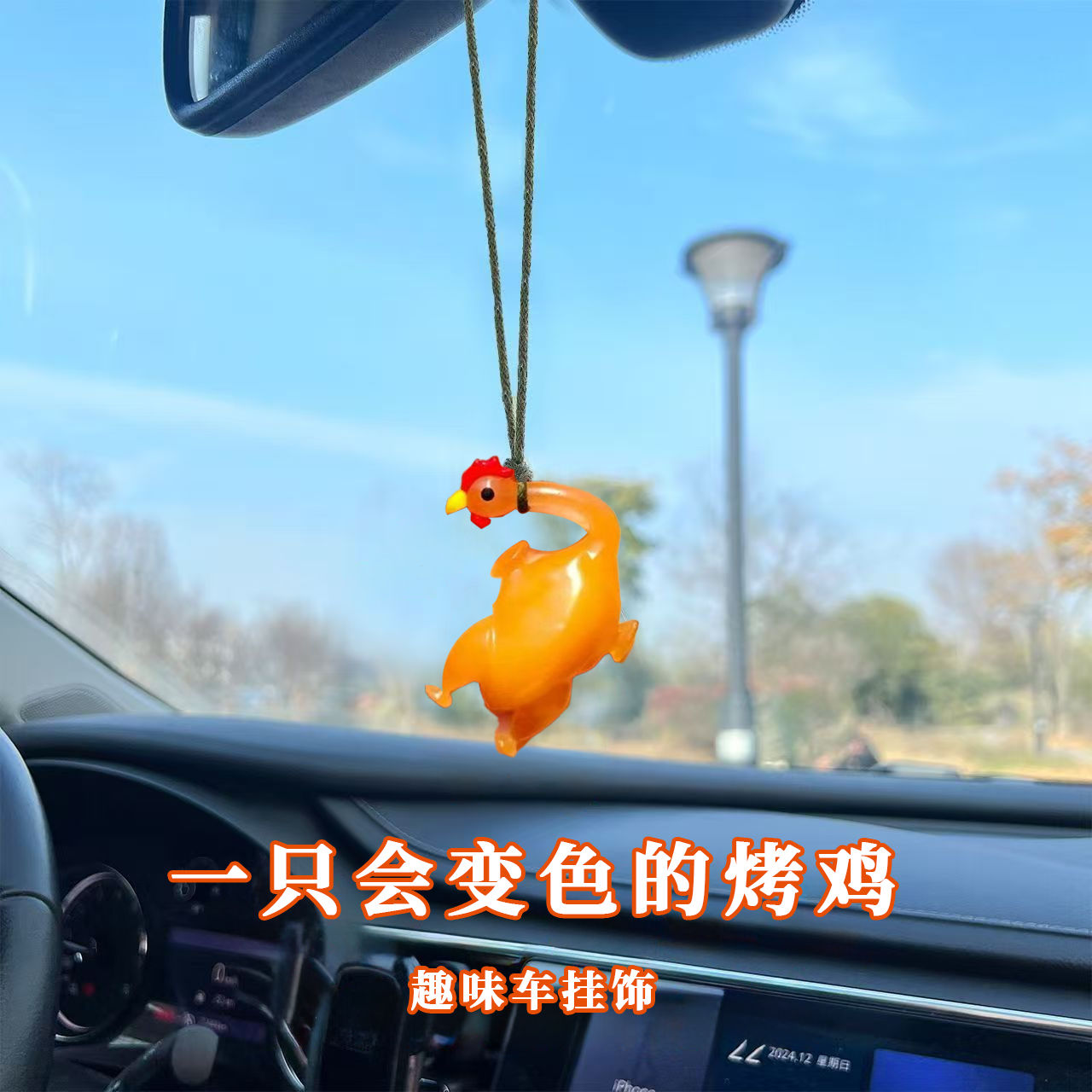 變色烤鴨烤肉烤雞掛件變色烤鴨擺件紫外線感溫變色鑰匙扣車內裝飾