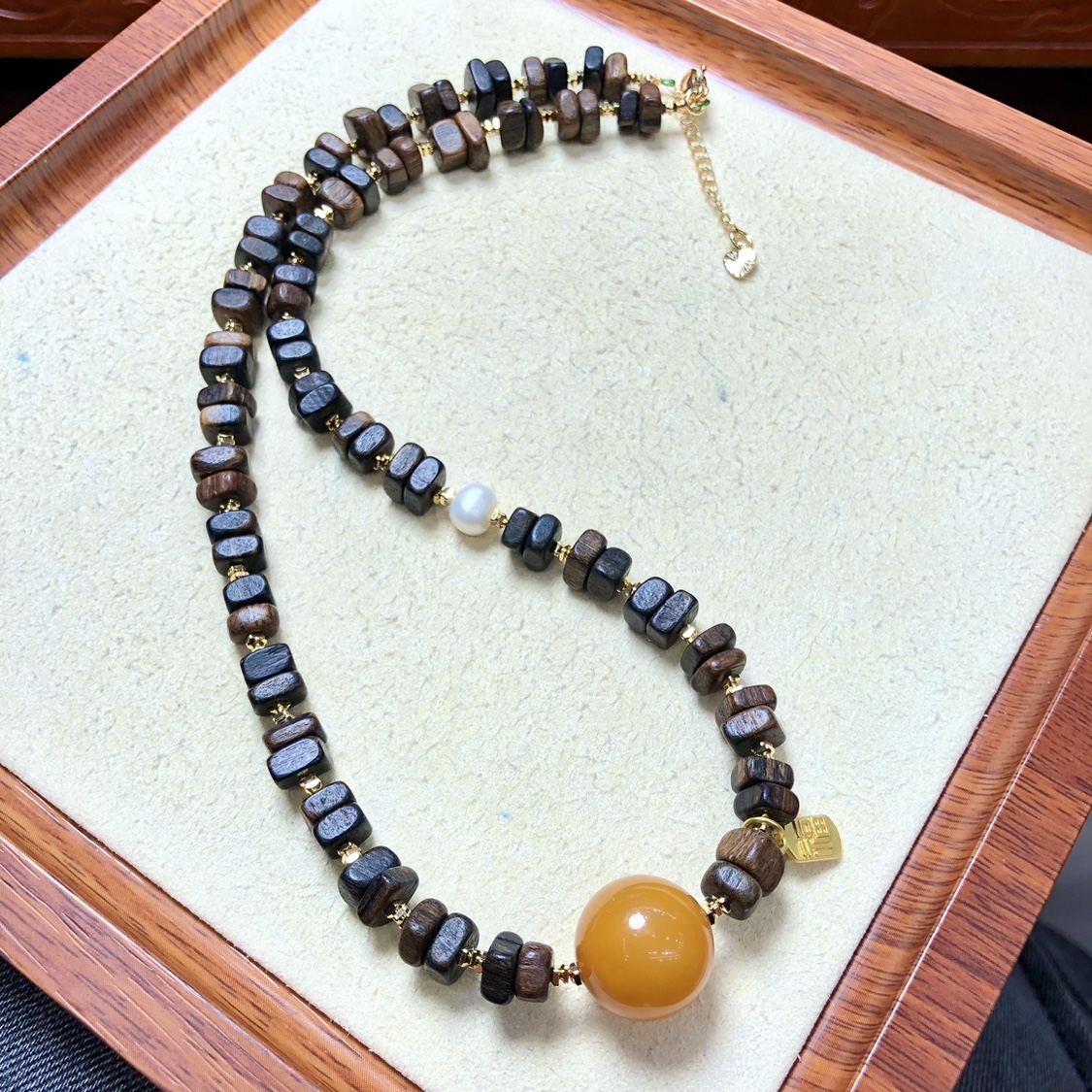P001 天然蜜蠟鎖骨鏈原創達拉干沉香項鏈雞油黃滿蜜6-15mm首飾