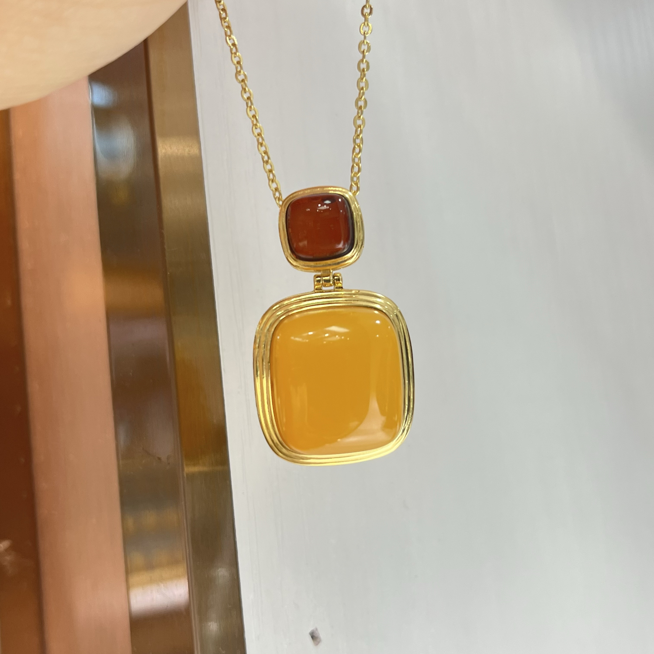 天然蜜蠟方糖吊墜項鏈毛衣鏈琥珀血珀搭配蜜蠟方糖鎖骨鏈毛衣鏈