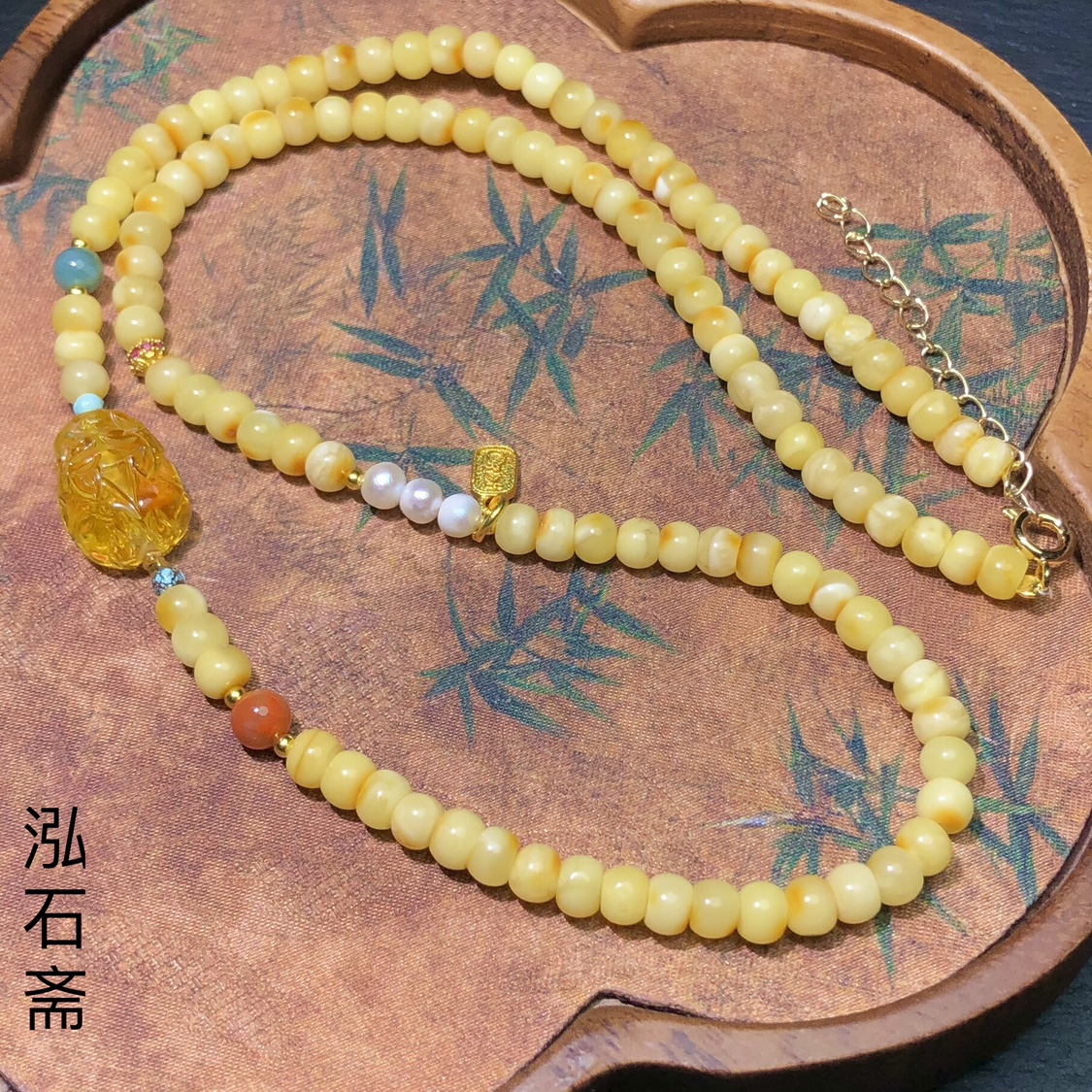 天然老蜜蠟水滴吊墜搭配碧玉珠鏈原創搭配毛衣鏈女款蜜蠟掛墜飾品