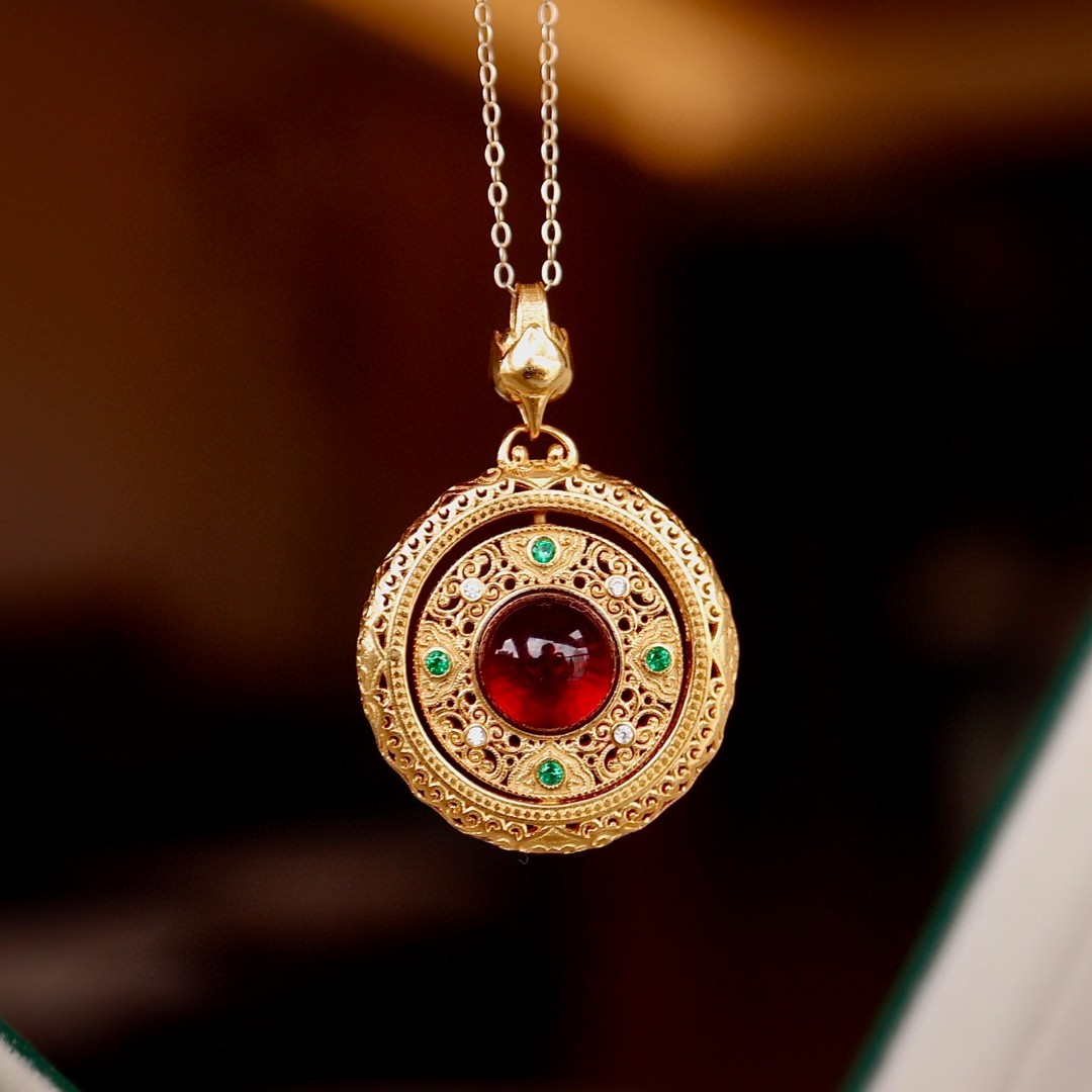 天然血珀圓牌吊墜 S925銀 可轉動 主石約8mm 血珀無雜無裂