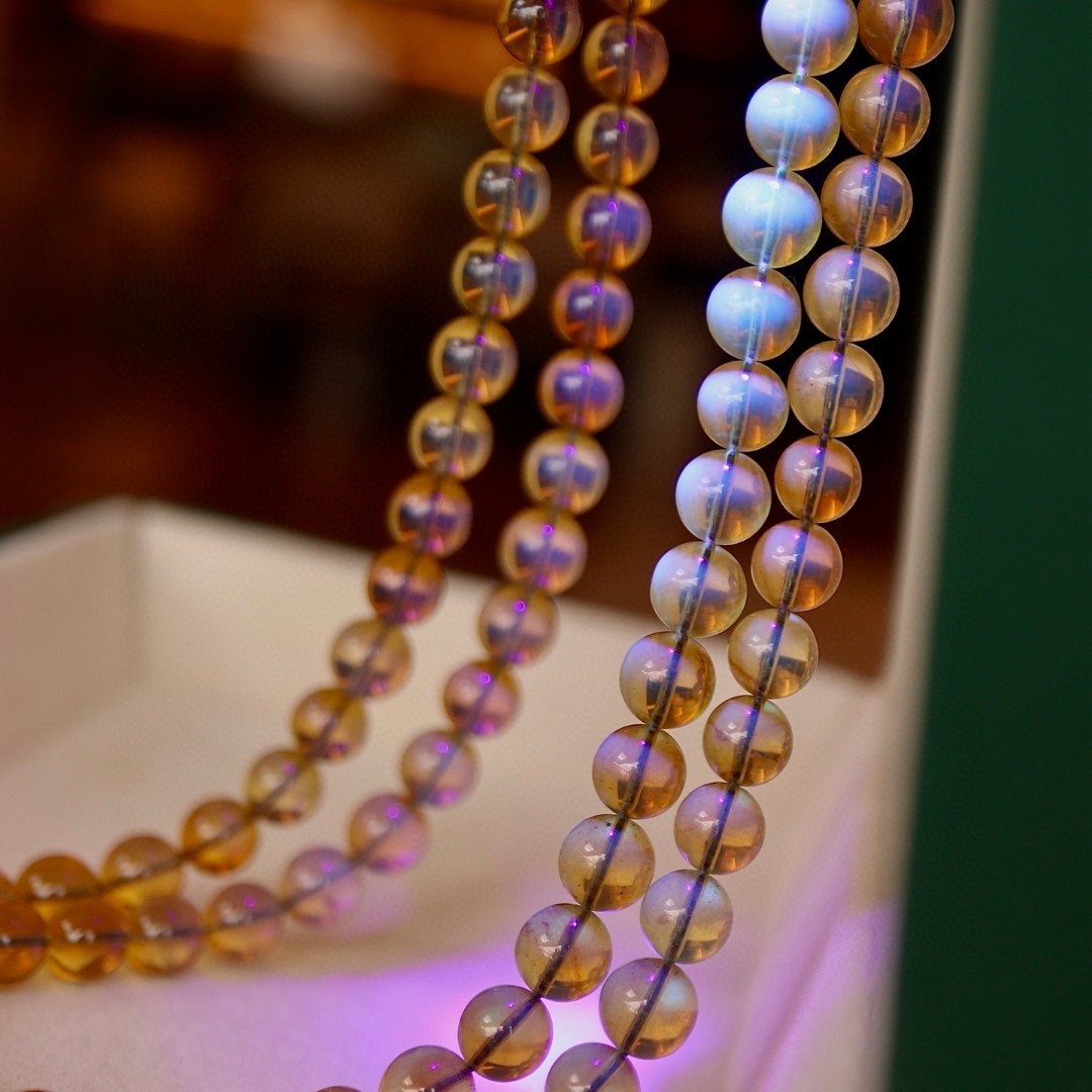 緬甸天然金色琥珀項鏈9mm圓珠琥珀項鏈108顆金珀項鏈一物一證