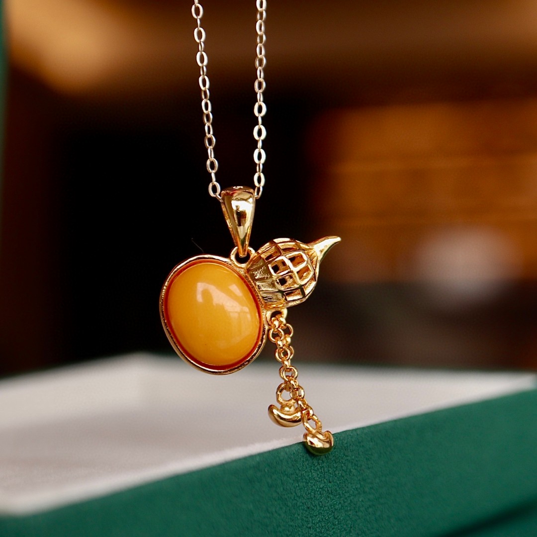 天然原礦蜜蠟項鏈 銀鍍金2024年新款爆款輕奢小眾設計款