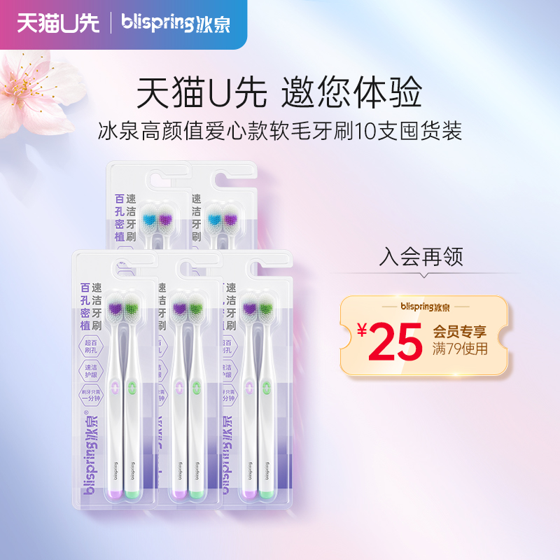 【天貓U先】冰泉軟毛護齦愛心情侶牙刷百孔密植速潔牙刷