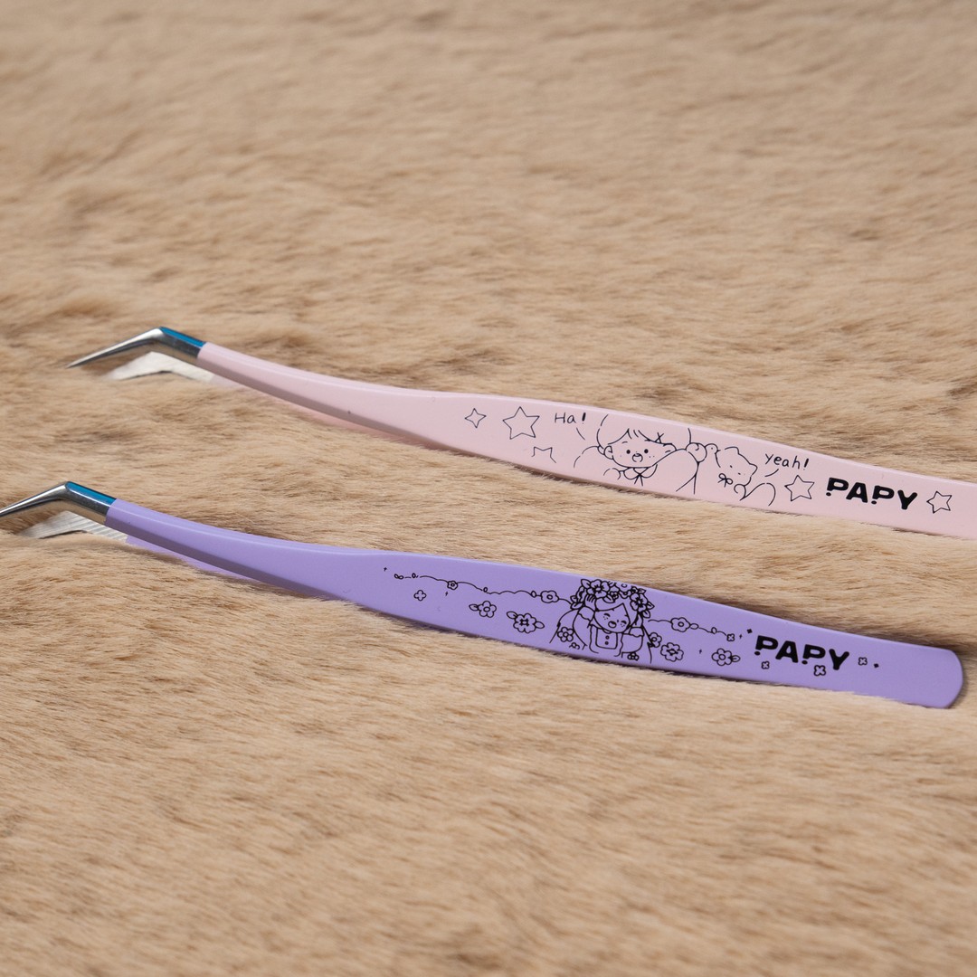 【新品鑷子】山茶妹妹蓬蓬手賬工具金屬彎頭鑷子超尖細黑白手繪風