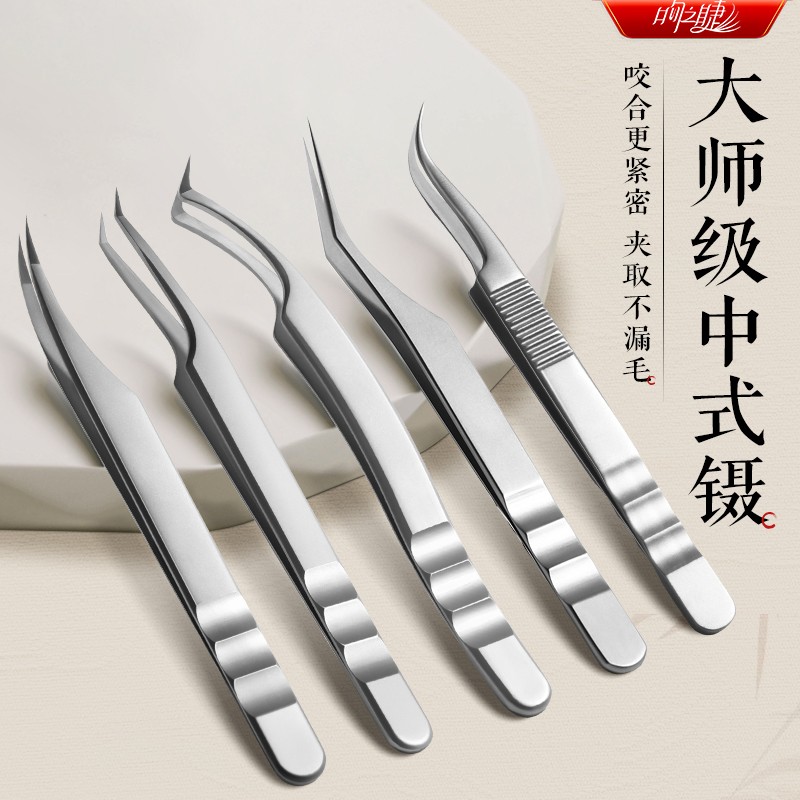 中式美睫鑷子高級美睫師單雙手專用高品質高精密嫁接睫毛工具夾子