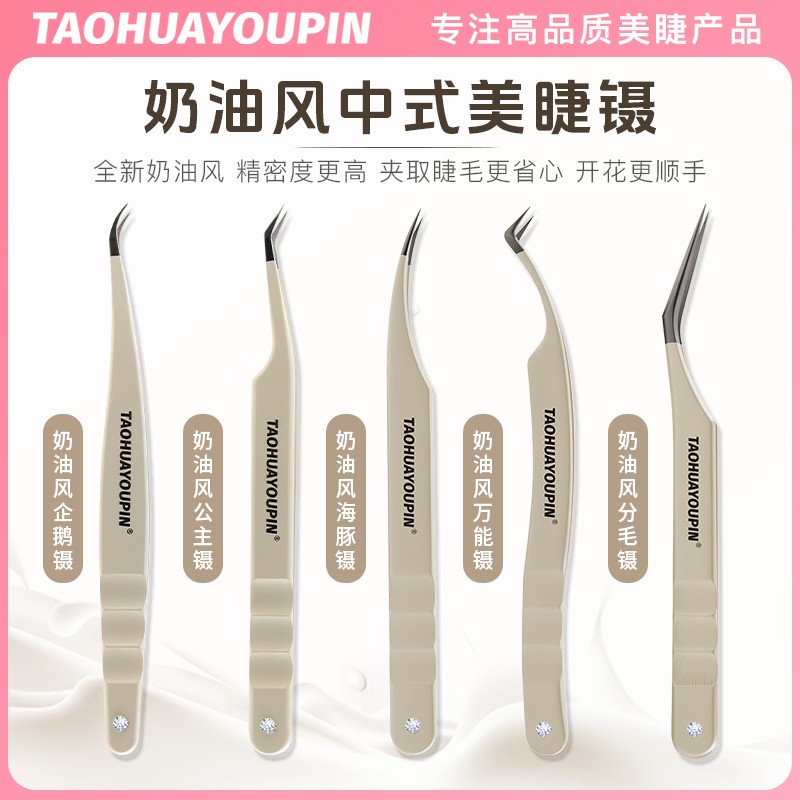 奶油風中式高階美睫鑷子嫁接公主企鵝鑷睫毛開花鑷子美睫師專用