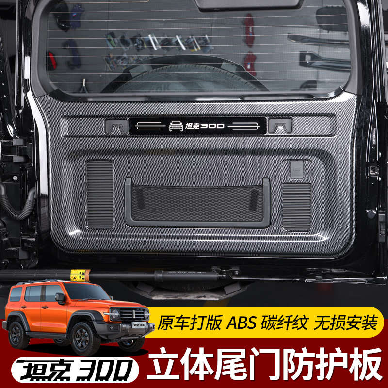 專用于坦克300尾門防踢墊后備尾箱貼碳纖紋防刮板改裝防護內飾件