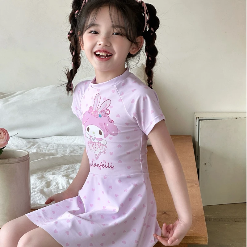 兒童泳衣女寶連體平角美樂蒂超顯白女童泳衣夏季新款