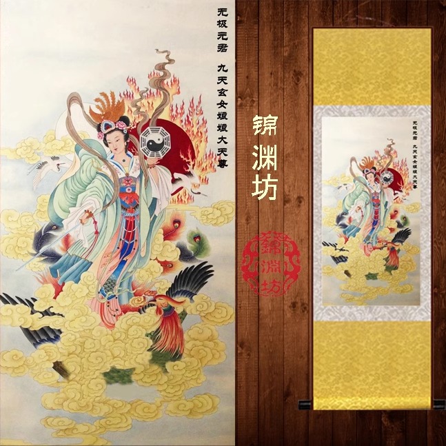 九天玄女娘娘絲綢畫女媧畫像 天尊掛畫裝飾畫卷軸畫 已裝裱