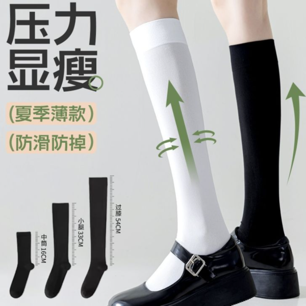 黑色襪子女夏季薄款過膝搭配小皮鞋樂福鞋jk小腿壓力瘦腿祙中筒